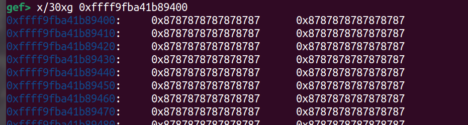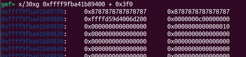 通過 slub-dump 觀察到 (附註一下我這邊 Demo 為了識別方便改 padding 0x87)